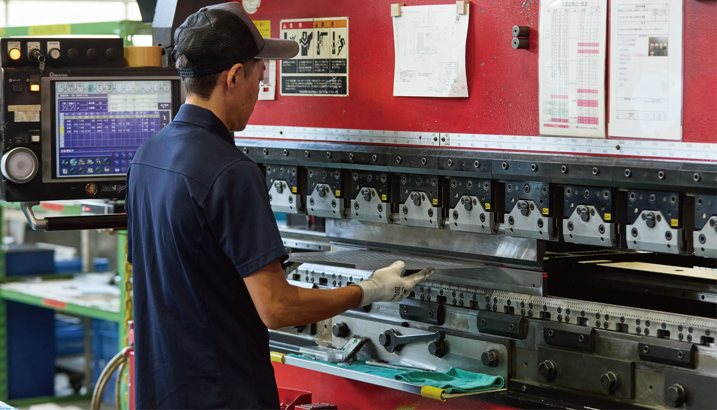 金属の大きな板を切断したり、曲げたり、溶接しながらパーツを作り込んで行きます。主に機械設備に使われるパーツを作っています。